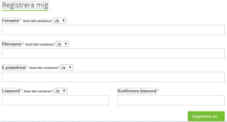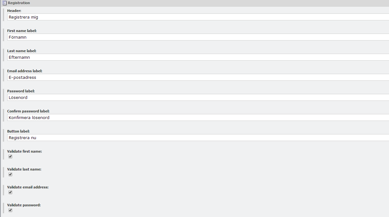 In this case I have a page that presents a simple registration form. I wanted to give the editors the choice to decide if the text fields needs to be validated.