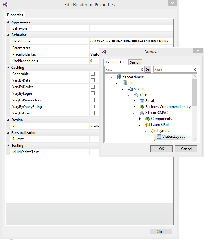 Here you can see how the datasource in the SubAppRenderer points to the SPEAK page – VisitorsLayout: