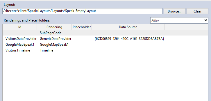 I’ve added a SubPageCode(the js file), the map component(GoogleMapSpeak1), timeline component(VisitorsTimeline) and a GenericDataProvider(VisitorsDataProvider) which is needed in order to get the visitor data.
