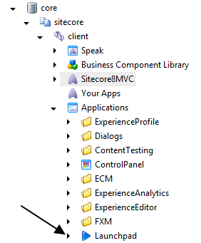 3. Add the sub page to the front page (Launchpad – “/sitecore/client/Applications/Launchpad”)