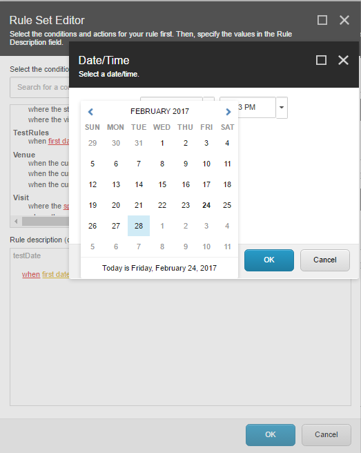 There will be two values(date picker) which will be compared by using the operator condition.