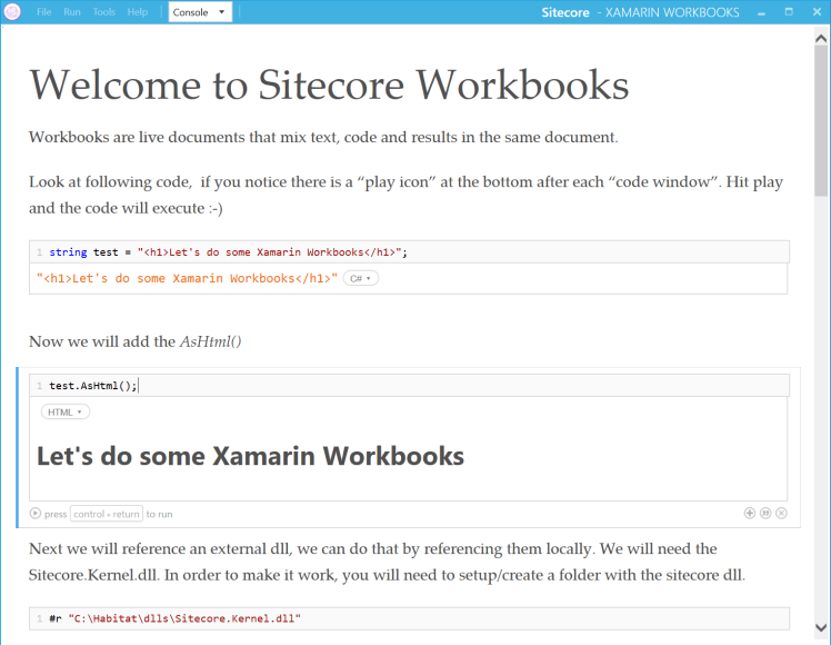 This is very cool, I hope that the Sitecore people will take a look at the Xamarin Workbooks and add it to the Sitecore documentation. I mean interactive documentation – How cool is that 🙂