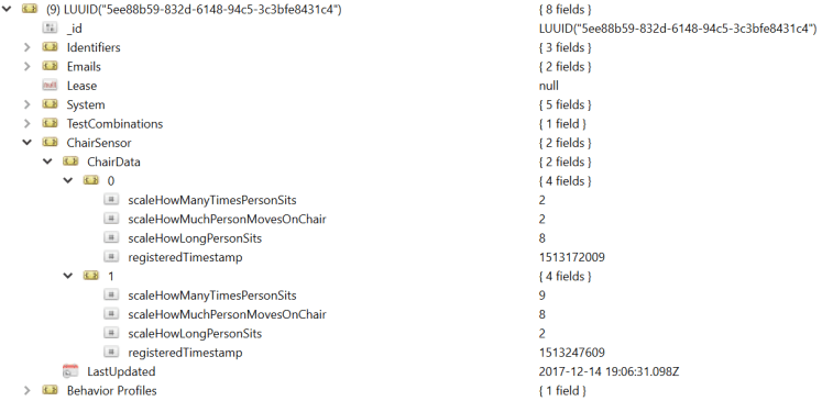 First we need to create the facet, let’s call it ChairSensor. The ChairSensor facet will contain a collection of “SensorData” elements and a “LastUpdated” field: