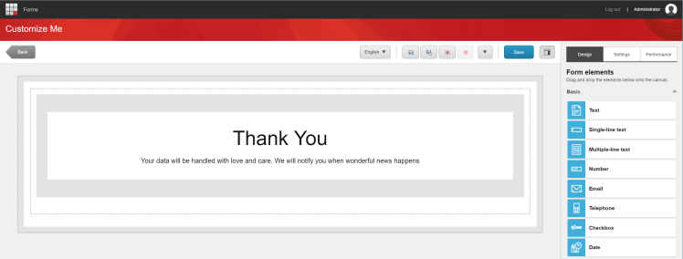 A tip! Instead of doing a “Thank you” view to redirect to (when submitting the form). Why not create a second page in the form and let the submit button be a “Next”. Then just add some text to the new page, something like this: