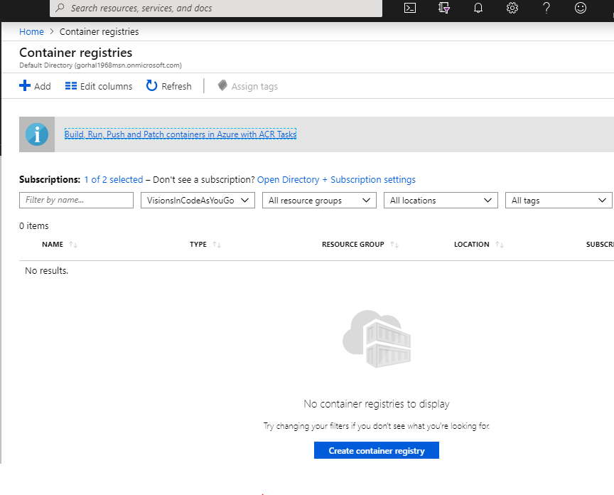 First we need to login/sign up to Azure Portal – https://azure.microsoft.com/en-us/services/container-registry/