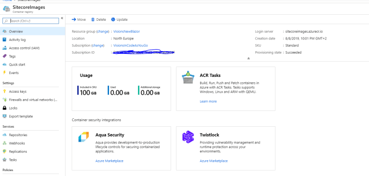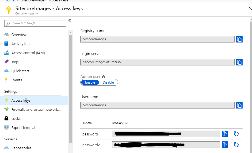 According to How to use in the readme doc, they suggest we setup a private Docker repository(It’s important it is private we don’t want any Sitecore images laying around in the open/public). Here is Azure Container Registry suggested and I have to agree, it’s easy to setup.