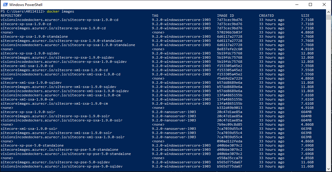 Ok, our Sitecore 9.2 images are now generated. We have them in Azure but also on our computer.