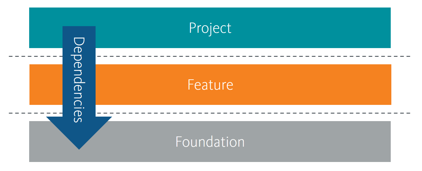 It’s all about dependencies and controlling it! Helix defines three layers: Project, Feature and Foundation. Where each layer has a very clearly defined purpose.