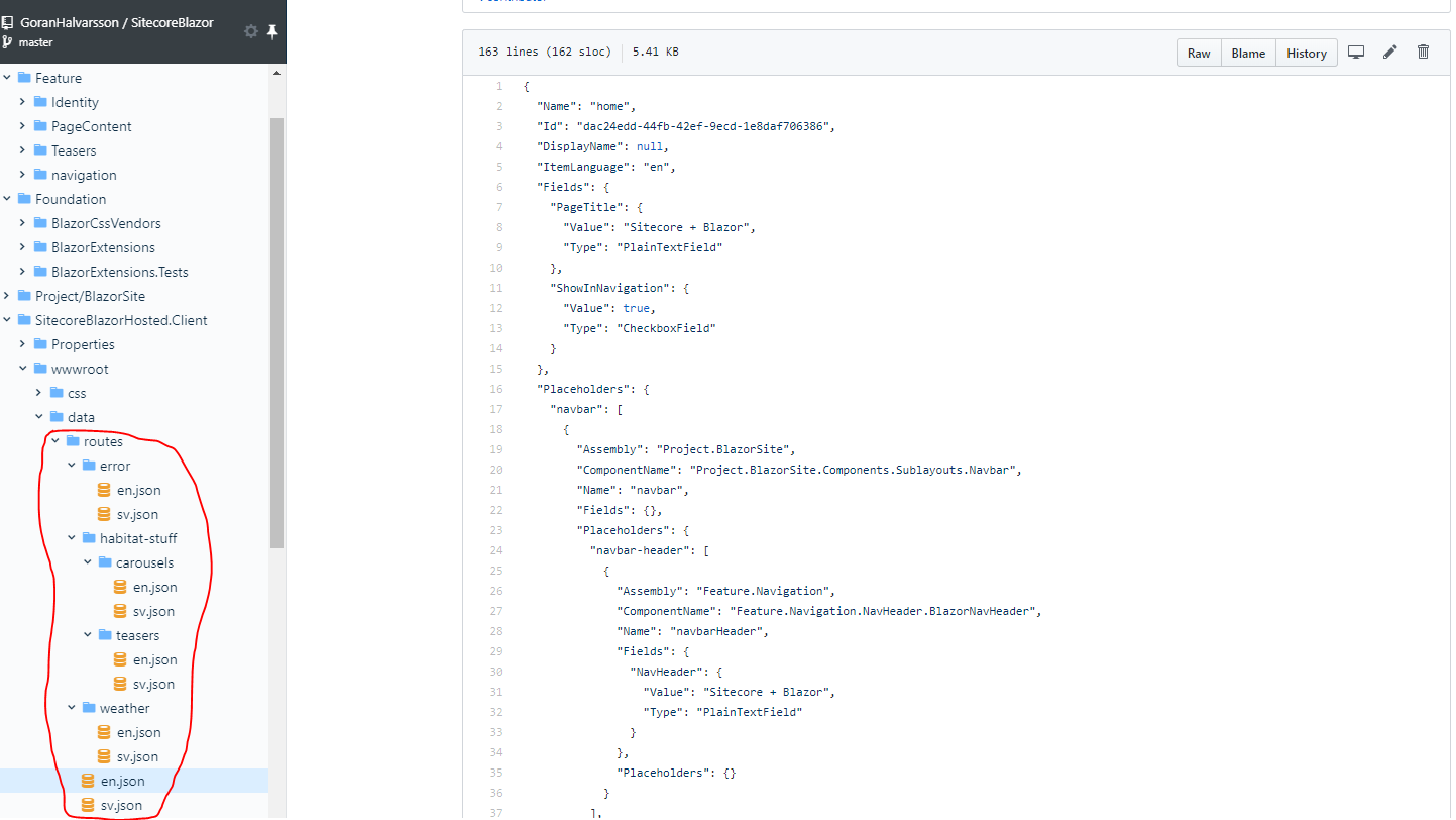 At github: https://github.com/GoranHalvarsson/SitecoreBlazor/blob/master/SitecoreBlazorHosted.Client/wwwroot/data/routes/en.json