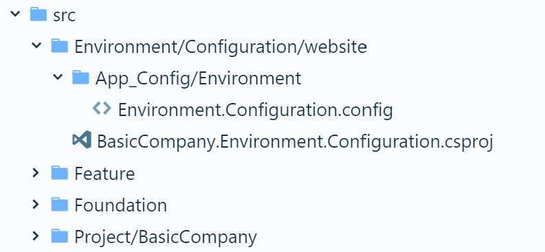 Sitecore TDS will handle serialization and syncing of the Sitecore items. I really like that it’s supporting Rainbow Yaml Serialization. Very nice indeed! So lets use the Rainbow Yaml stuff π e need to make a change in Sitecore to support the Yaml serialization, default it’s using the “old” serialization. I’ve created a separate project for that, called BasicCompany.Environment.Configuration