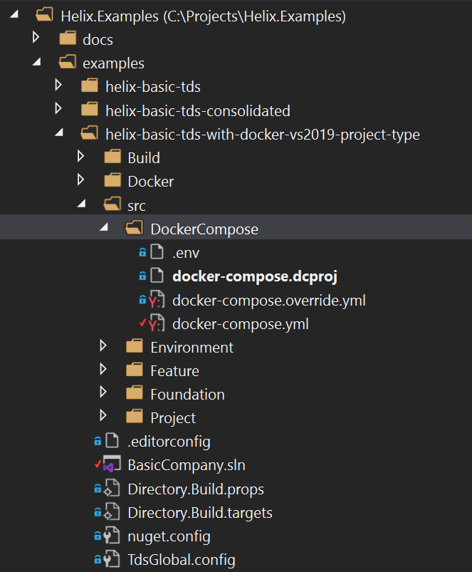 For the docker-compose.yml, we will do some minor path changes for the data folder(Located in helix-basic-tds-with-docker-vs2019-project-type/Docker)