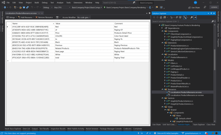 The Localization.ProductsResource.en.resx is also updated with the Keys and Phrases from the Sitecore Dictionary items: