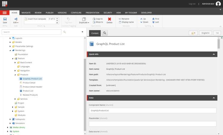 4. Create a rendering(in the Sitecore instance) for presenting the GraphQL search result