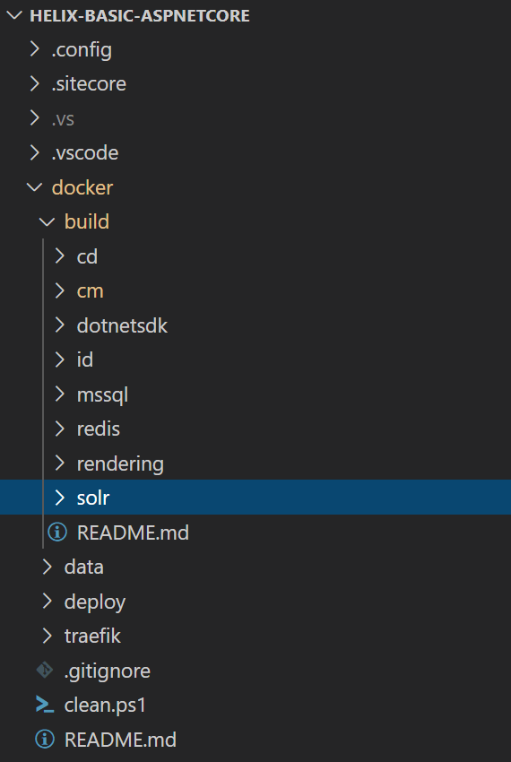 Great, now we can begin. We will update the Solr docker file(to add the Solr core). The setup will be similar to how it’s done in my favourite repository – helix-basic-aspnetcore at Sitecore Helix Examples. Locate the docker/build/solr folder: