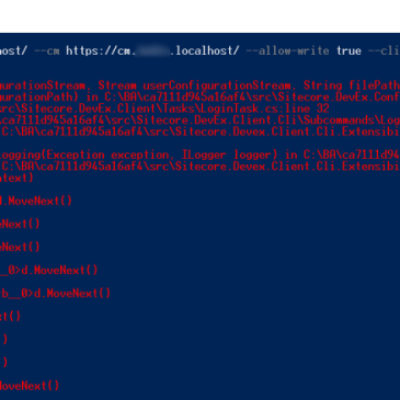 Hey fellow developers, this is a very short post ๐ I recently got an error when trying to do a dotnet sitecore login. This was indeed strange, I have never seen this before. After tons of hair-pulling, I found the culprit. It turned out to be the user.json file in the .sitecore folder. I had … More Sitecore Command Line error on dotnet sitecore login