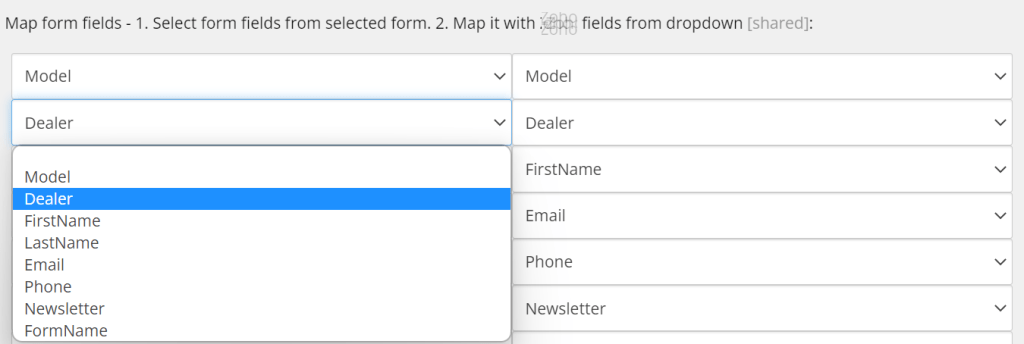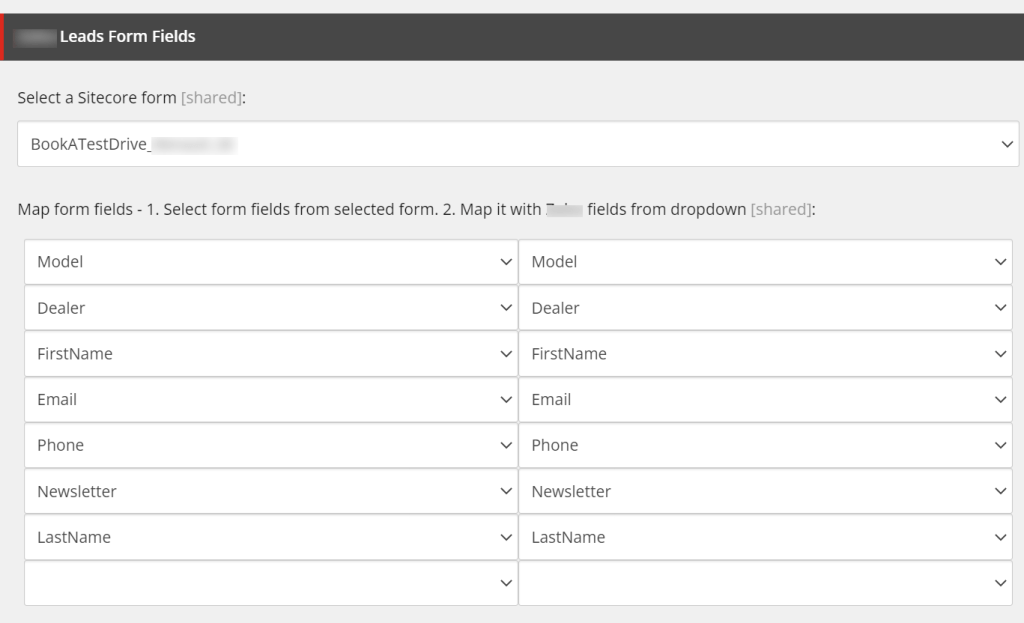 This means that in the first dropdown we list all the “forms fields” from the “selected” Sitecore Form, and in the second dropdown, we list some children(from the current item).