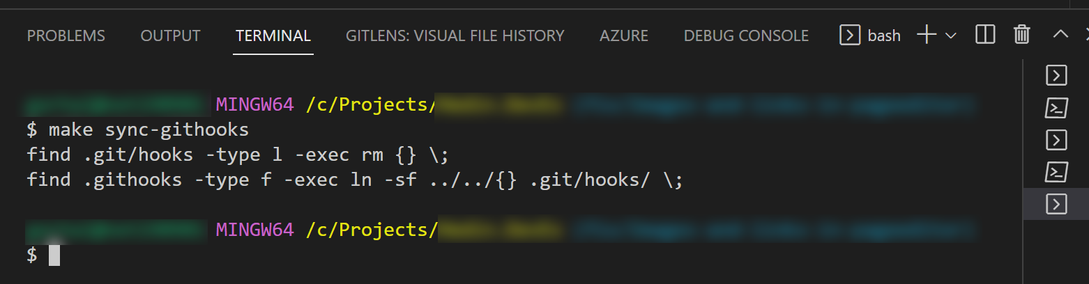 But unfortunately, I could not get the “make sync-githooks” to run in PowerShell.
