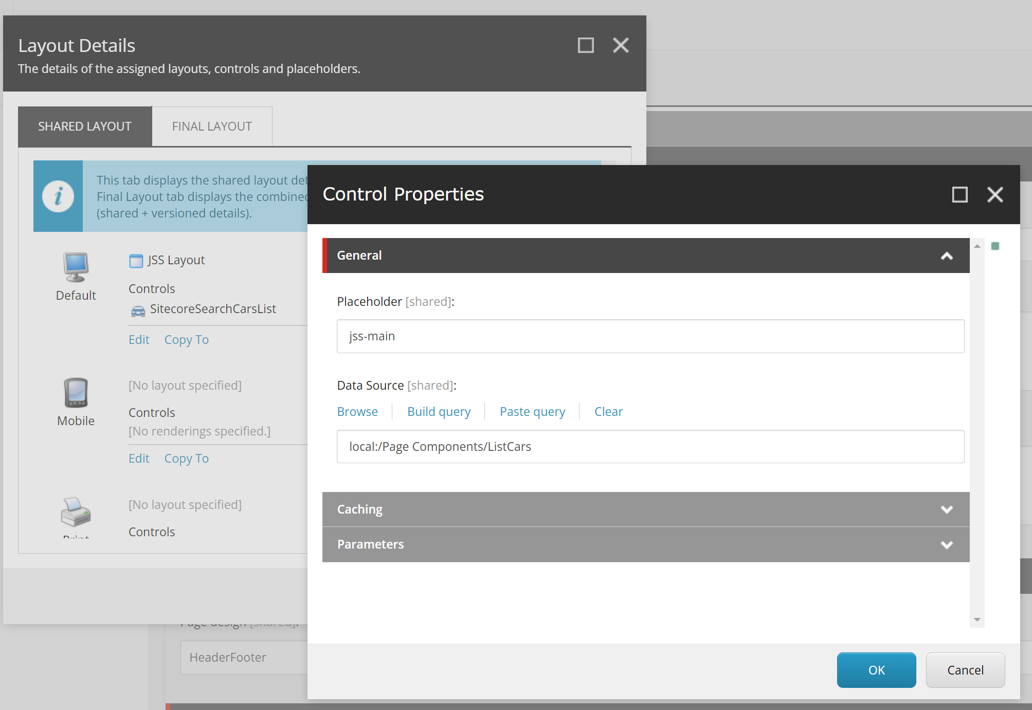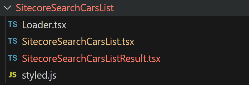 The “SitecoreSearchCarsList” component is the one we use in the Sitecore rendering, and that’s where we get all the datasource fields from.